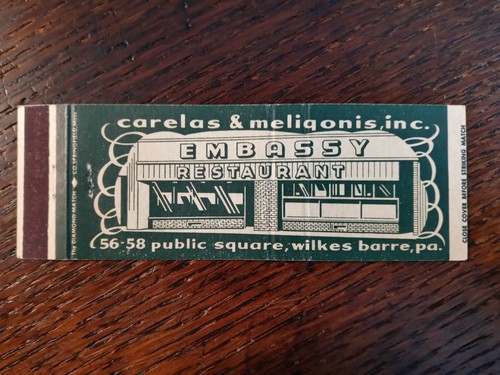 Vintage Matchcover Embassy Restaurant Wilkes Barre Pa Ebay